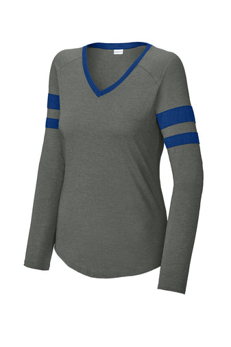 Women's Halftime Stripe LS V-Neck